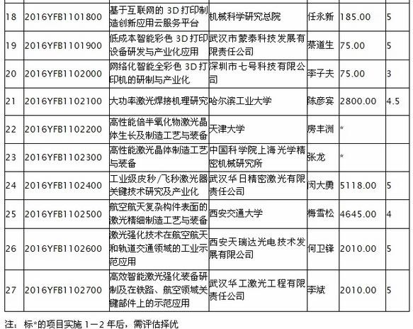 近日,國(guó)家重點(diǎn)研發(fā)計(jì)劃“增材制造與激光制造”重點(diǎn)專項(xiàng)2017年工作會(huì)議在北京舉行。主要對(duì)2016年已經(jīng)立項(xiàng)的全部項(xiàng)目進(jìn)行年度評(píng)估工作,后續(xù)也將結(jié)合評(píng)估情況組織專家進(jìn)行項(xiàng)目抽查,以保障“增材制造與激光制造”重點(diǎn)專項(xiàng)的順利實(shí)施。 據(jù)OFweek激光網(wǎng)了解,國(guó)家重點(diǎn)研發(fā)計(jì)劃“增材制造與激光制造”重點(diǎn)專項(xiàng)實(shí)施周期為5年(2016-2020年),主要工作為突破增材制造與激光制造的基礎(chǔ)理論,取得原創(chuàng)性技術(shù)成果,超前部署研發(fā)下一代技術(shù);攻克增材制造的核心元器件和關(guān)鍵工藝技術(shù),研制相關(guān)重點(diǎn)工藝裝備;突破激光制造中的關(guān)鍵技術(shù),研發(fā)高可靠長(zhǎng)壽命激光器核心功能部件、國(guó)產(chǎn)先進(jìn)激光器,研制高端激光制造工藝裝備。 總體而言,國(guó)家重點(diǎn)研發(fā)計(jì)劃“增材制造與激光制造”重點(diǎn)專項(xiàng)致力于基礎(chǔ)理論與前沿技術(shù)、關(guān)鍵工藝與裝備、創(chuàng)新應(yīng)用與示范部署,促使我國(guó)傳統(tǒng)制造業(yè)轉(zhuǎn)型升級(jí),支撐高端制造業(yè)的發(fā)展。 2016年,本重點(diǎn)專項(xiàng)在增材制造與激光制造2個(gè)方向已啟動(dòng)實(shí)施27個(gè)項(xiàng)目,涉及航空航天、醫(yī)療、互聯(lián)網(wǎng)等多個(gè)領(lǐng)域。以下為公示清單: