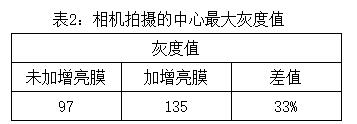 該膜材通過內部微棱鏡結構改變光的發散角度,將光收集到正前方從而達到提高該光源正方向的能量利用率。實驗使用的照度計為柯尼卡美能達CL-200,亮度計為CS-160。相機為東芝CSFS20BC2,鏡頭為computar 2514。分別使用照度計,亮度計測試該背光源不加棱鏡膜和加入棱鏡膜后的照度,亮度并與相機拍攝出來圖片灰度值進行對比。