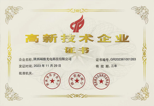 喜報:碩維光電再次榮獲“高新技術企業證書