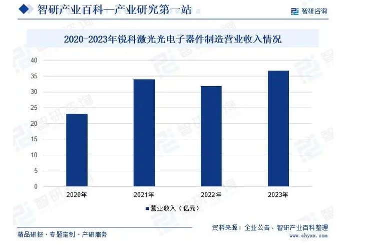 銳科激光專注于光纖激光器及其關鍵器件與材料的研發、生產和銷售,產品種類豐富,覆蓋了多個應用領域。其主要產品包括連續光纖激光器、脈沖光纖激光器、準連續光纖激光器、焊接專用光纖激光器、清洗專用光纖激光器、3D打印專用光纖激光器等,此外,銳科激光還涉足超快激光器領域,包括紅外皮秒、綠光皮秒、紫外皮秒以及紅外飛秒、綠光飛秒、紫外飛秒等多種類型,廣泛應用于顯示和面板玻璃切割、汽車玻璃切割、FPC覆蓋膜切割等高端制造領域。2023年銳科激光光電子器件制造業務營業收入為36.79億元,同比增長15.42%,其中脈沖光纖激光器、連續光纖激光器、超快激光器營業收入分別為4.38億元、29.64億元、0.69億元。