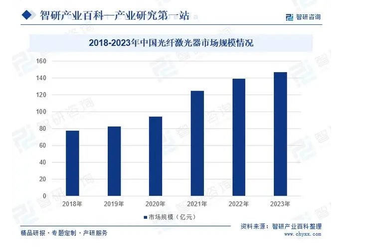 摘要:近年來,中國光纖激光器市場規模保持增長趨勢,2022年市場規模達139.5億元,同比增長11.78%。光纖激光器技術的不斷創新,提高了輸出功率、光束質量和穩定性等關鍵指標,推動了市場需求的增長。2023年中國光纖激光器市場規模增速加快,達到147.1億元。汽車、家電、機械、消費電子等下游行業規模的擴大,對激光焊接設備的需求也更加旺盛,從而拉動了光纖激光器的市場需求。未來,隨著技術的進步和下游應用需求的提升,高功率光纖激光器將成為市場發展的重點方向。