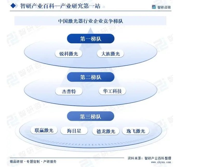 我國激光器行業競爭梯隊中,主要分為三個梯隊,第一梯隊企業主要有銳科激光、大族激光等,這些企業在高功率激光器、光纖激光器、超快激光器等高端激光器領域具有較強的技術實力和市場競爭力,產品性能和質量達到國際先進水平,市場占有率和品牌影響力較高。第二梯隊企業主要包括杰普特、華工科技等,這些企業在技術方面雖然不如領軍企業領先,但也具備一定的技術實力和研發能力。能夠快速響應市場需求,推出符合客戶需求的激光器產品。第三梯隊企業主要有聯贏激光、海目星、德龍激光以及逸飛激光等,這個梯隊包括了大量的中小型企業和新興企業,他們共同構成了中國激光器行業的多元化競爭格局。這些企業在技術方面相對較弱,缺乏自主研發能力和核心技術。主要依靠引進技術和模仿創新來生產激光器產品。